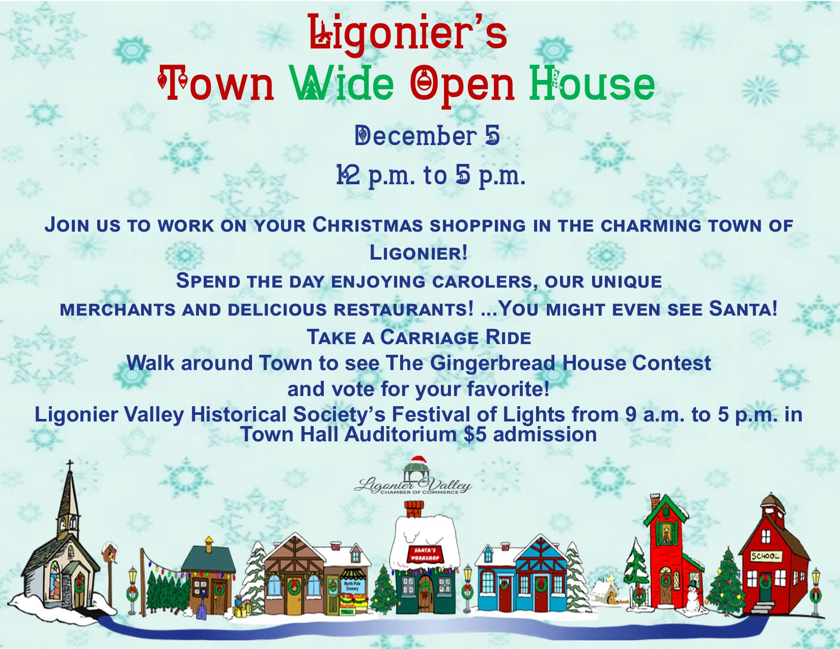 Enjoy carolers and sleigh rides as you do your Christmas shopping in Ligonier! Take a break for lunch or dinner, and select a restaurant from our wonderful variety!